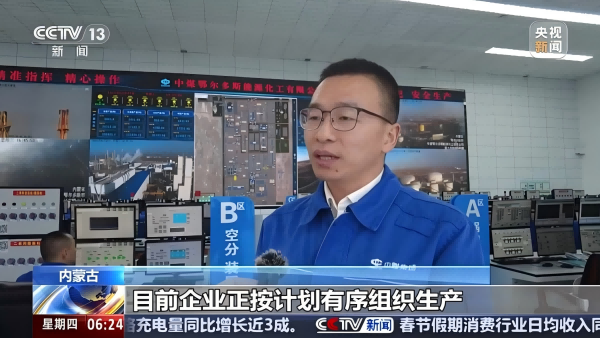 中國中煤鄂爾多斯能化公司圖克分公司生產指揮中心副經理孫永斌:目前企業正按計劃有序組織生產,日產氮肥6000多噸,全力保障春耕用肥安全。