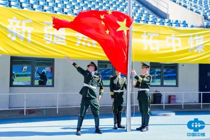 開幕式伊始,國旗護衛隊擁著鮮艷的五星紅旗踏步而來,緊跟國旗之后的是中國中煤司旗、司徽,寓意中國中煤緊跟國家步伐,把握時代脈搏,發展勢頭迅猛。